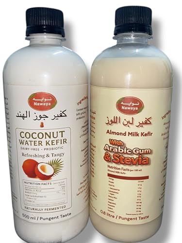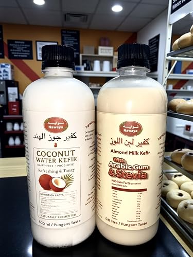 - كفير جوز الهند واللوز خالي من منتجات الألبان وغنية بالبروبيوتيك تدعم صحة الأمعاء وتعزز المناعة وتساعد على الهضم عن طريق تقليل الانتفاخ والإمساك. توفر العناصر الغذائية الأساسية والدهون الصحية (MCTs من جوز الهند)، والبكتيريا المفيدة، مما يوفر بديلاً مغذيًا وخاليًا من اللاكتوز لمنتجات الألبان التقليدية