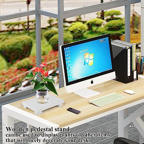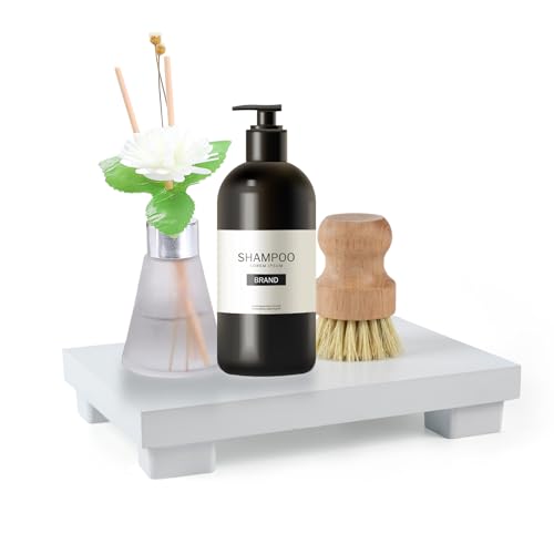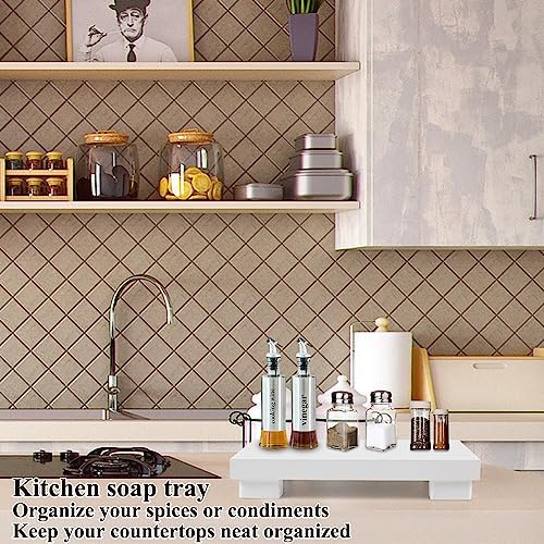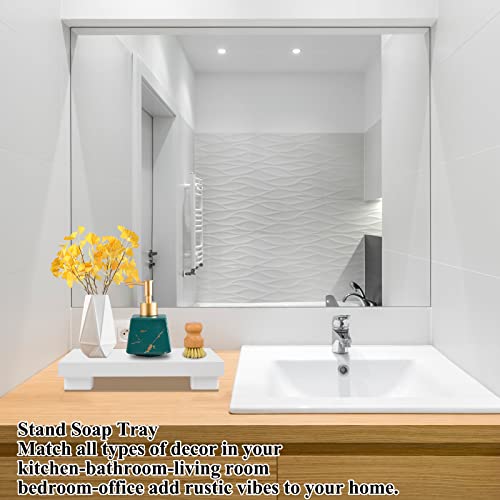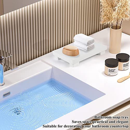 KEHOUXRE - صينية صابون بقاعدة خشبية حامل خشبي لرفع الصابون حوض المطبخ طبق ديكو لعرض الشموع وزجاجات النباتات ريفية - ابيض