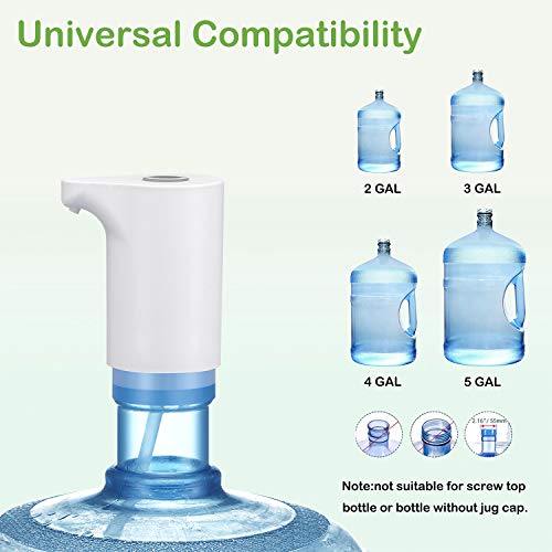 - توافق عالٍ: مضخة المياه تناسب الزجاجة ذات الحجم العالمي بسعة 2-5 جالون. متوافقة مع الزجاجات ذات السعة المختلفة: 5 لتر، 7.5 لتر، 11 لتر، 18.9 لتر. يرجى التأكد من المقاس والتأكد من شراء أغطية الزجاجات (إذا لم يكن لديك) عند الطلب.