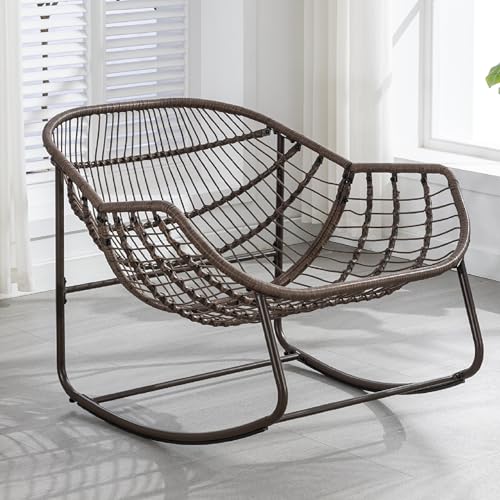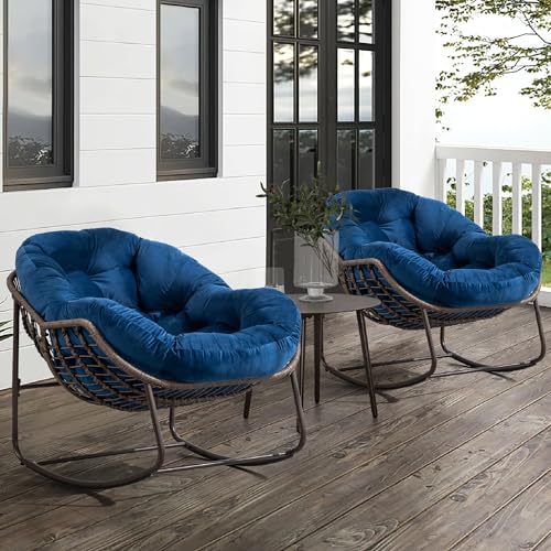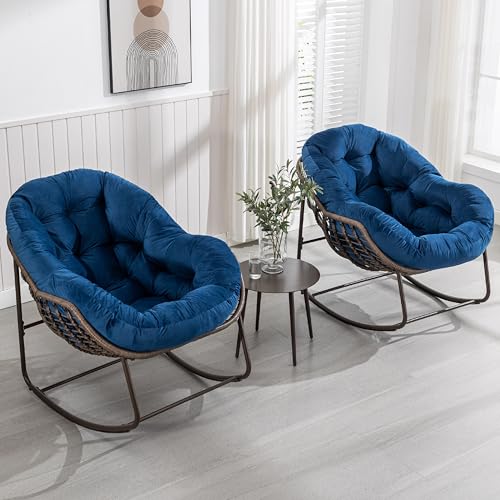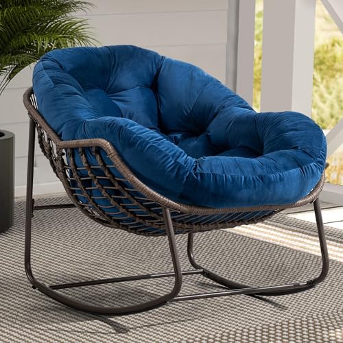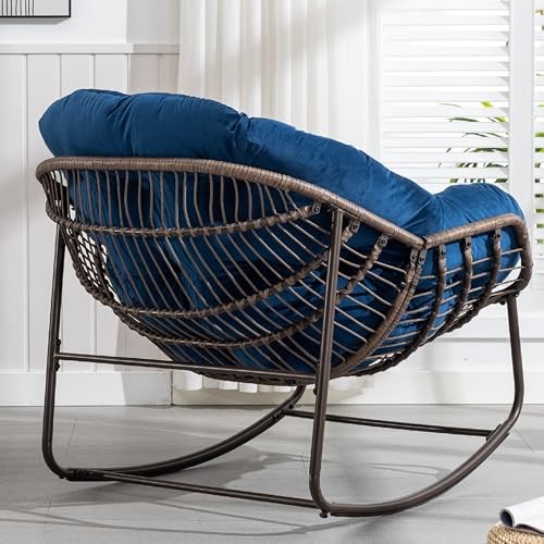 KEIKI - كرسي هزاز كبير الحجم من الراتان والبوليستر المغزول للأماكن الخارجية والداخلية من كيكي، كرسي استرخاء باباسان للقراءة في الفناء مع إطار من الصلب، كرسي هزاز للشرفة والحديقة والفناء، لون أزرق