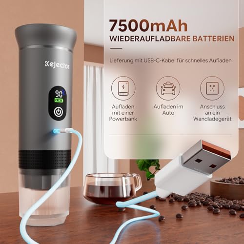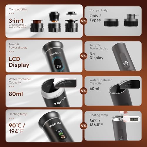 kejector - كيجيكتور ماكينة تحضير قهوة اسبريسو محمولة للسيارة، متوافقة مع القهوة المطحونة، كبسولات للتخييم والمشي لمسافات طويلة والتخييم والمكتب والسفر