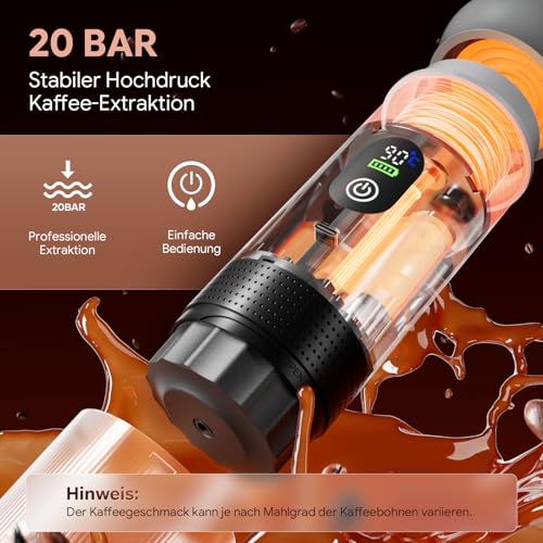 - 【تسخين تلقائي سريع】تعمل ماكينة القهوة التي تعمل بالبطارية من كيجيكتور على تسخين 50 مل من الماء في درجة حرارة الغرفة حتى 93 درجة مئوية (200 درجة فهرنهايت) في أقل من 300 ثانية، مما يضمن لك الحصول على اسبريسو ساخن في دقائق. مع ضغط 20 بار، يسمح باستخلاص مكثف ومتساوي مع كريم كريمي. استمتع بقهوة عالية الجودة في أي مكان - سواء في البرية أو في المنزل.