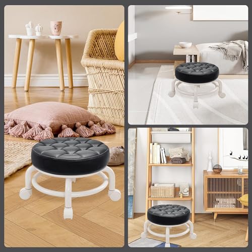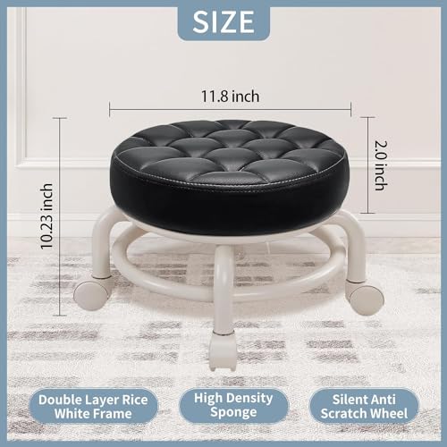 KELAICAIONE - مقعد منخفض دوار 360 درجة من كيلايكيون، مقعد منخفض بعجلات لتغيير الاحذية وتنظيف المكياج مع عجلات وباديكير والتدليك والمنتجعات الصحية والمنزل (اسود)