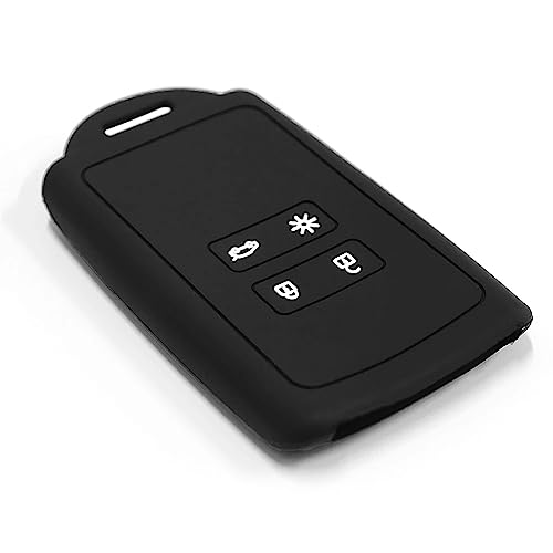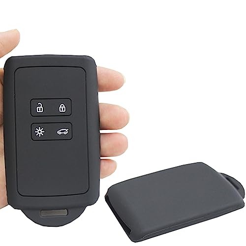Kelay - كيلاي حافظة بطاقات مفاتيح من رينو لسيارة اركانا كابتور ترافيك كليو جراند سينيك كادجار كوليوس ميجان زوي داسيا داستر غطاء مفتاح السيليكون - 4 ازرار اسود قطعة واحدة