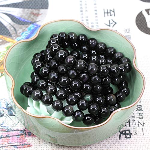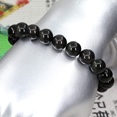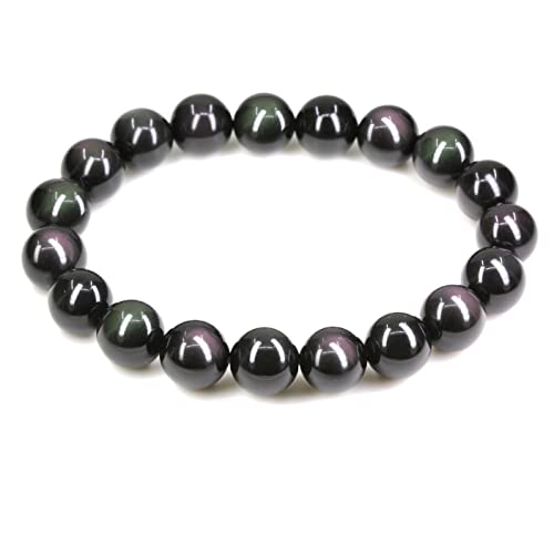 Keleny - كيليني سوار كريستال عصري قابل للتمدد للرجال والنساء 10 ملم خرز دائري من حجر اليشب الصخري 7 انش للجنسين، 7 انش، حجر، زجاج بركاني