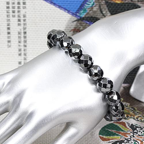 Keleny - كيليني سوار من الاحجار شبه الكريمة مقاس 12 ملم احجار كوارتز طبيعية وخرز دائري كريستالي قابل للتمدد 7 انش للجنسين حجر هيماتايت