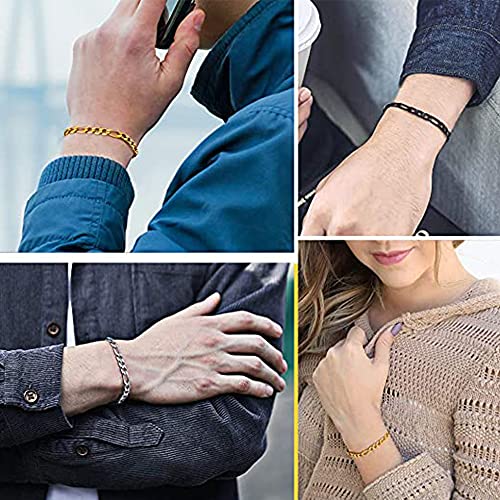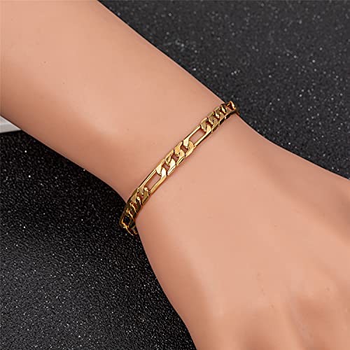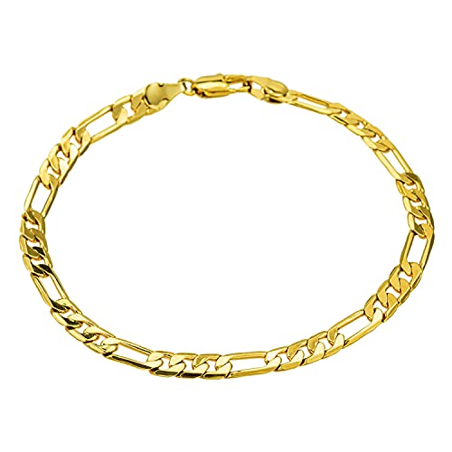 kelistom - كيليستوم سوار سلسلة للرجال والنساء من فيجارو مطلية بالذهب عيار 18 قيراط عرض 5 ملم طول 7.45 انش 8.26 نحاسي كريستال