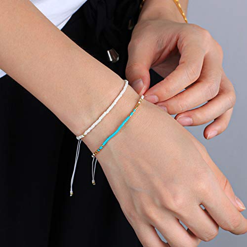 KELITCH - KELITCH أساور ملونة خرز ميوكي التفاف الصداقة نسائية عصرية قابلة للتعديل أحجار كريمة من النايلون والحرير
