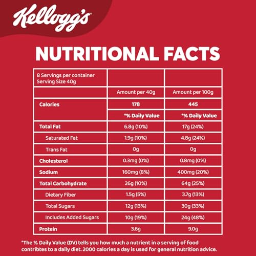 - يوفر كل وعاء من رقائق الذرة من كيلوجز 50% من الاحتياجات اليومية من فيتامين D، مما يساهم في الحفاظ على العظام الطبيعية.