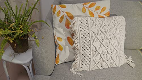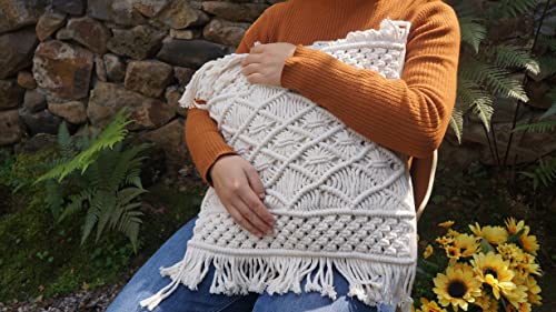 - صُنعت أغطية مخدات الزينة المكرمية يدويًا بتصميم مصنوع بشكل معقد وتفاصيل جمالية أنيقة.