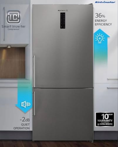 Kelvinator - ثلاجة من كلفينيتور بفريزر سفلي، سعة 650 لتر، ستانلس ستيل، مع تقنية نو فروست ومحرك إنفرتر وتحكم إلكتروني