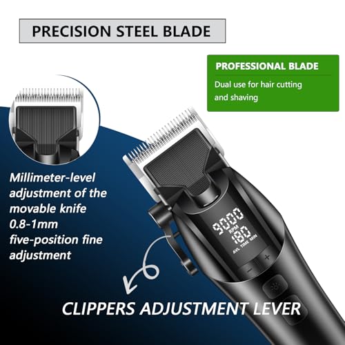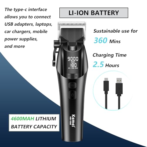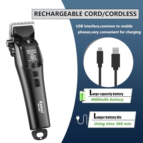 KEMEI - ماكينة حلاقة شعر احترافية طراز 1858 قابلة لإعادة الشحن لقص وتشذيب الشعر لاسلكية مزودة بشاشة ليد و5 إعدادات سرعة قابلة للتعديل للرجال من كيمي