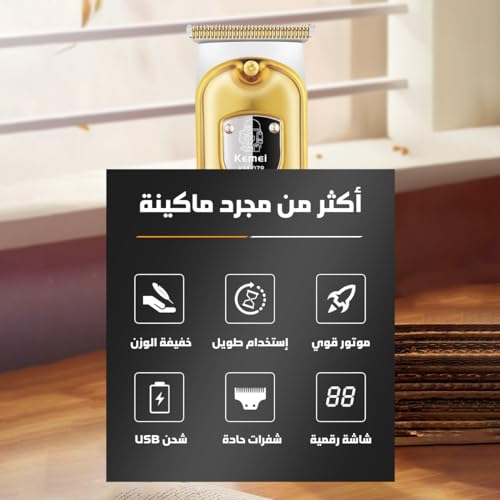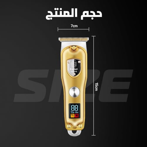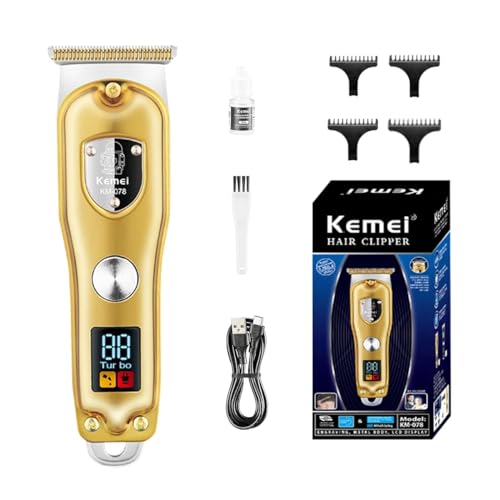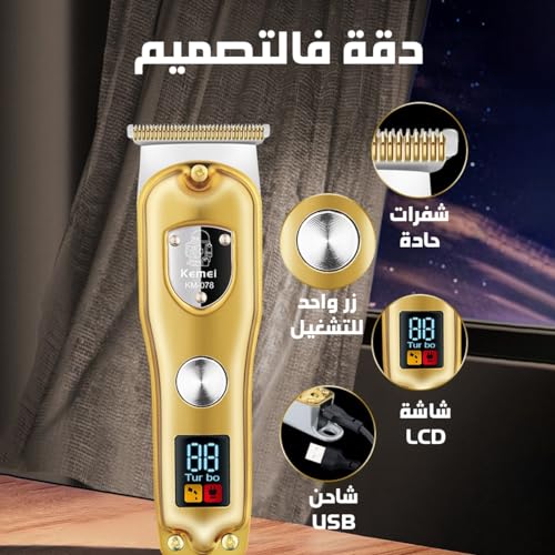 Kemei - ماكينة حلاقة وقص الشعر الاحترافية من كيمي، دقيقة مع شفرة الستيل الكربوني، استخدام 100 4 أمشاط، تصميم لطيف على البشرة، KM-078 (لون ذهبي)