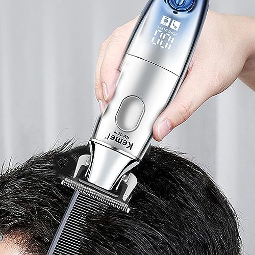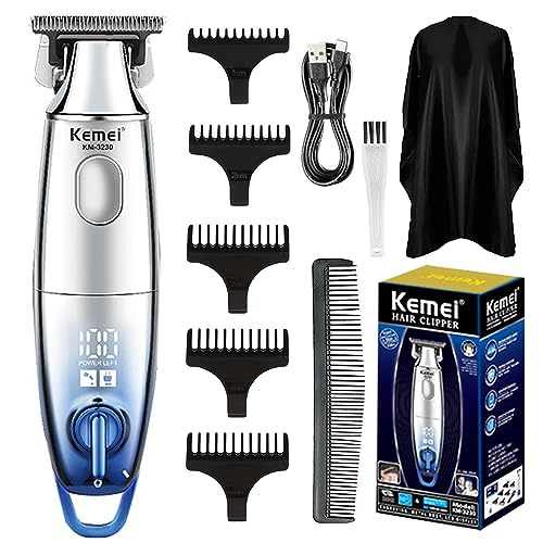 KEMEI - ماكينة حلاقة احترافية لاسلكية للرجال، ماكينة حلاقة كهربائية للحلاقة قابلة لإعادة الشحن مع شاشة LCD بشفرة على شكل حرف T للرجال موديل KM-3230 من كيمي