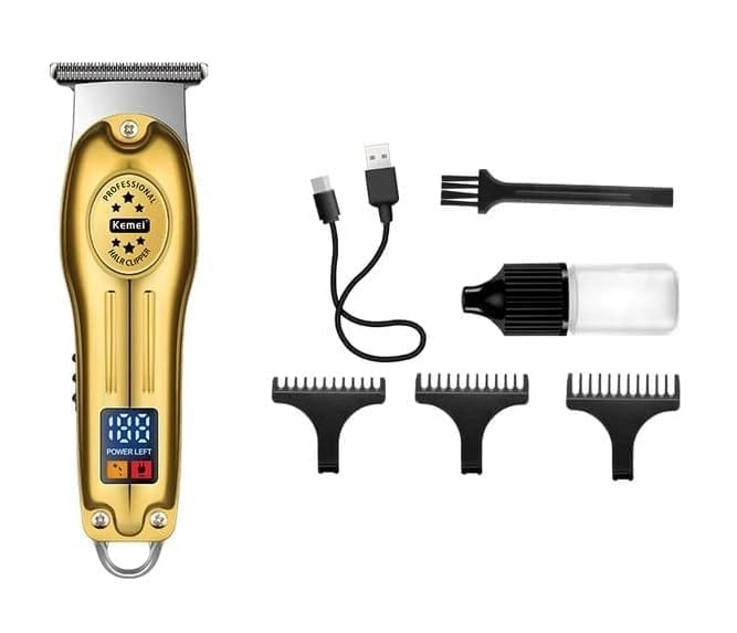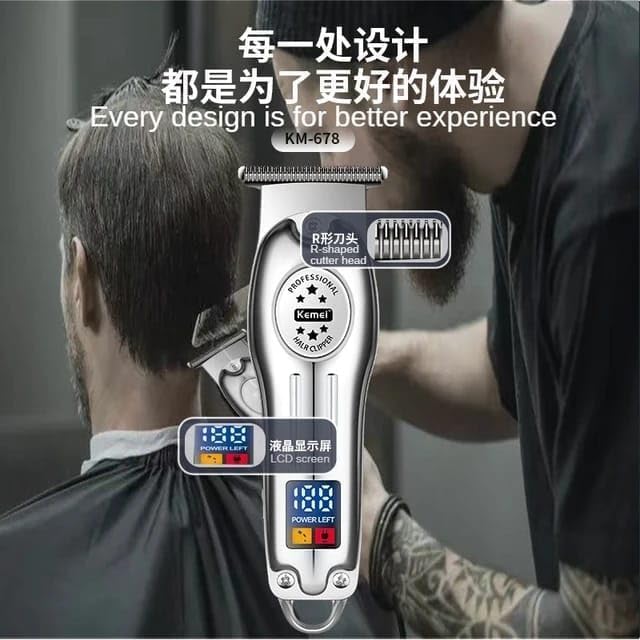 KEMEI - ماكينة حلاقة الشعر الكهربائية الاحترافية km-678 بشاشة LCD رقمية وشحن USB وهيكل معدني من كيمي
