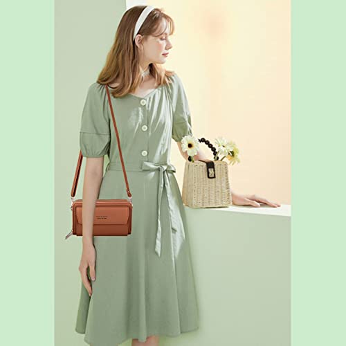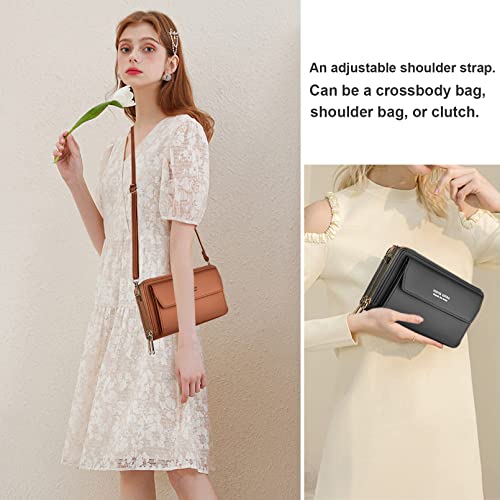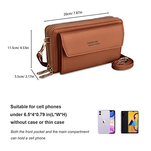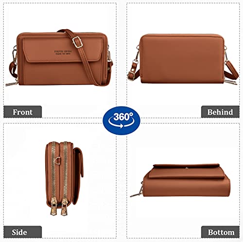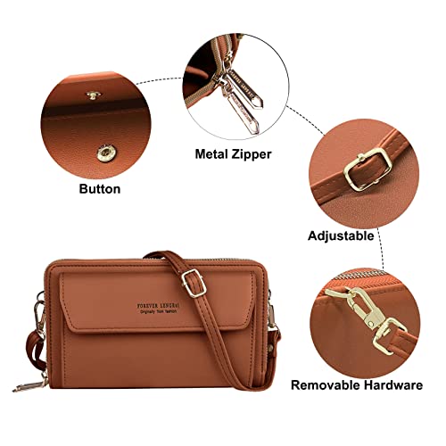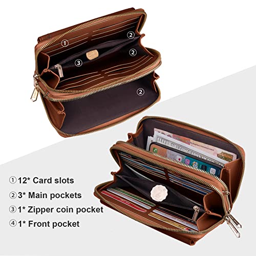 Kememo - جراب موبايل للتعليق من كيميمو، شنطة كتف للموبايل للنساء، محفظة، الجلد النباتي مع 12 فتحة للبطاقات، للجوال بسوستة، لون بني