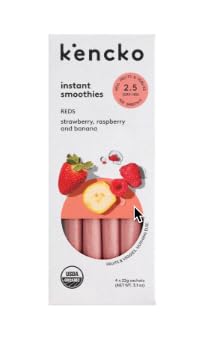kencko - علبة عصير عضوية، 2.5 حصة من الفواكه والخضروات العضوية، 4 حصص في كل علبة من كينكو، أحمر وأزرق وأخضر وأرجواني، عبوة من قطعة واحدة (أحمر)