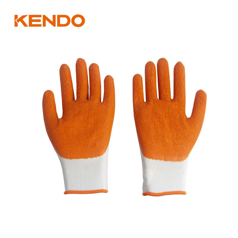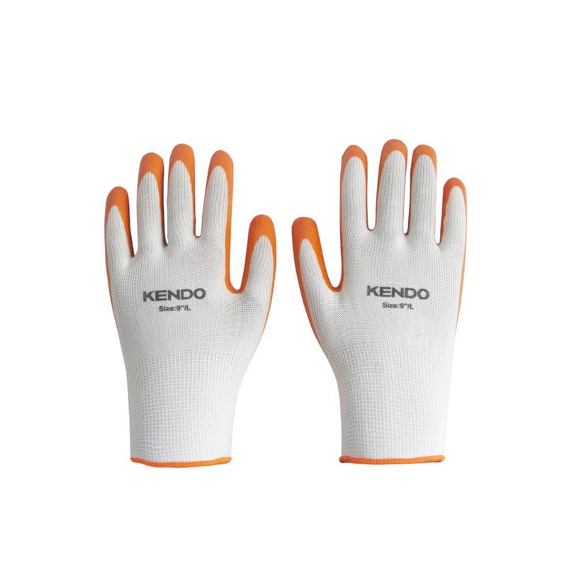 Kendo - قفازات مطلية باللاتكس، مقاس كبير وحجم 23 سم، أبيض وبرتقالي من كيندو