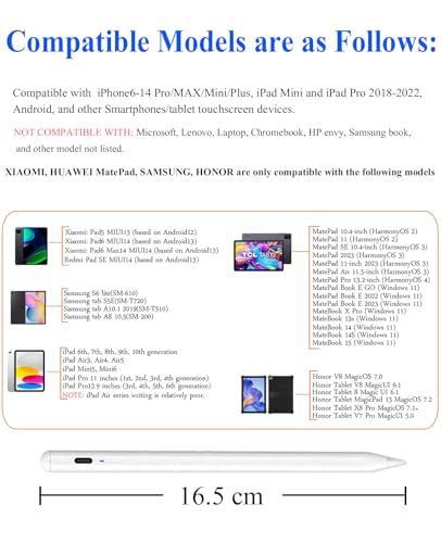 - توافقية واسعة: تم تصميم قلم باد برو القابل لإعادة الشحن خصيصًا لمعظم شاشات اللمس. متوافق مع معظم موديلات أجهزة التابلت التي تعمل باللمس وأجهزة التابلت التي تعمل بنظام اندرويد وأيضًا لموبايل 6/6 بلس وايفون 7 و7 بلس وموبايل 8 وفون اكس ار/اكس اس واي باد 2 ونيو باد 3/4 واي باد برو وباد/ميني 2/3/4. ملاحظة: غير متوافق مع: مايكروسوفت/تابلت، لاب توب، كروم بوك، اتش بي انفي، سامسونج بوك وغيرها من الموديلات غير المدرجة.