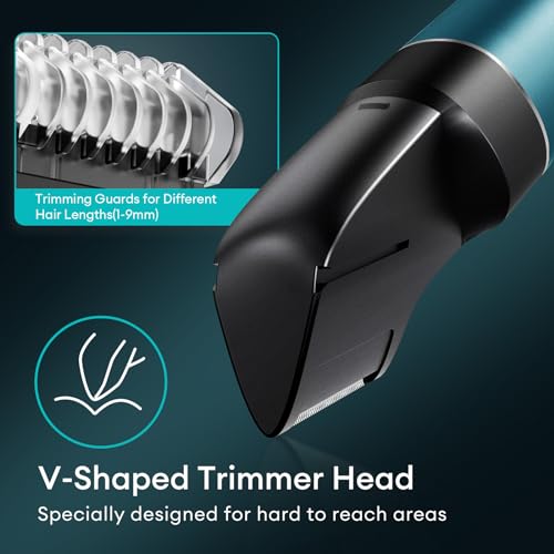 - 【ماكينة تشذيب بتصميم على شكل حرف V】تستخدم ماكينة تشذيب الجسم المريحة للرجال رأسًا على شكل حرف V للحلاقة بسهولة حتى في المناطق الضيقة والتي يصعب الوصول إليها مثل الظهر والبيكيني والمناطق الخاصة والأرداف، مما يتيح تشذيبًا دقيقًا لكل زاوية بثقة تامة. تعمل تقنية الشفرة الواقية للبشرة على تقليل تهيج الجلد الحساس، مع توفير حلاقة دقيقة بدون ألم أو جروح أو خدوش.