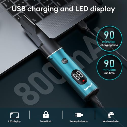kensen - ماكينة تشذيب شعر الجسم الكهربائية 3 في 1، لشعر العانة والمنطقة الحساسة والعناية الكاملة بالجسم، مقاومة للماء ورائعة للرجال من كينسين، لون أخضر