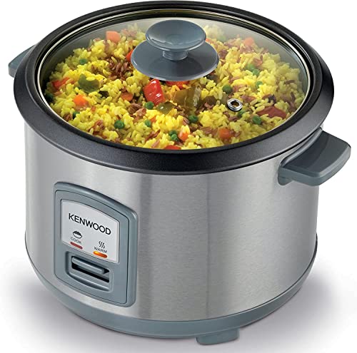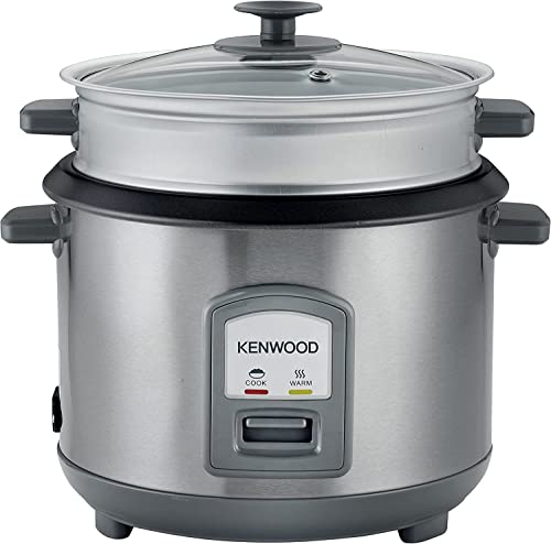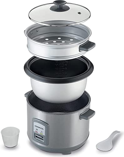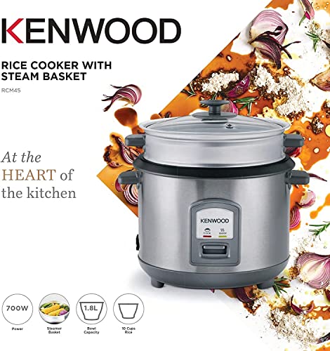 Kenwood - حلة طهي الارز كهربائية 2 في 1 من كينوود، لعدد 10 اكواب مع سلة طهي طعام بالبخار، سعة 1.8 لتر، 700 وات، وعاء طهي غير لاصق، فضي، RCM45.000SS - ضمان دولي