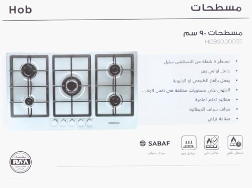 Kenwood - موقد غاز مدمج من الفولاذ المقاوم للصدأ من كينوود HOB90.000SS، عرض 90 سم