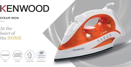 Generic - مكواة بخار من كينوود، 2100 وات، قاعدة سيراميك، 300 مل، أبيض برتقالي STP50