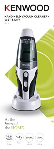 Kenwood - مكنسة لاسلكية للاستخدام الرطب والجاف مع بطارية ليثيوم ايون 14.8 فولت وسعة غبار 500 مل وسعة سائل 120 مل للمنزل والمكتب والسيارة من كينوود، HVP19.000BW لون أبيض وأسود