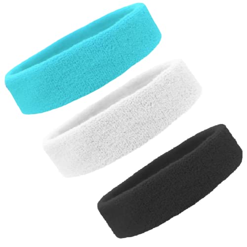 Kenz Laurenz - اربطة رأس للعرق مطاطية رياضية مصنوعة من قماش تيري بفتل مرطبة لممارسة التمارين الرياضية والجري وكرة السلة للرجال والنساء من كينز لورينز، (ازرق مخضر واسود وابيض)