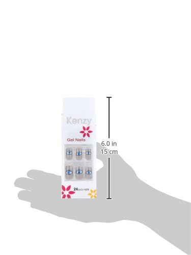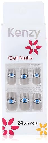 kenzy - اظافر جل برسمة عين زرقاء بخلفية لون رمادي، ملائمة لكافة الاصابع تضم 24 قطعة من كينزي