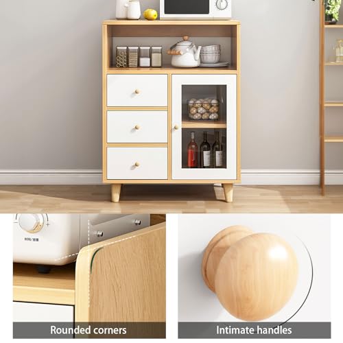 KEPFITESE - دولاب جانبي، دولاب قهوة جانبي حديث بثلاثة أدراج بباب واحد، دولاب تخزين بوفيه، دولاب كونسول للمطبخ وغرفة الطعام وغرفة المعيشة من كيبفيتيز (أبيض)