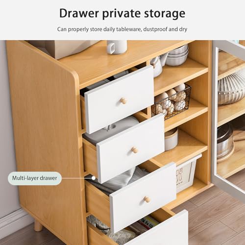 - ☕【الأدراج】: يمكنها تخزين أدوات المائدة اليومية بشكل منظم، مع حماية من الغبار والحفاظ على الجفاف. يحتوي دولاب التخزين على بابين، مما يوفر مساحة واسعة لتخزين مختلف الأغراض مثل أدوات المطبخ والكتب ومستلزمات الحمام والزينة.