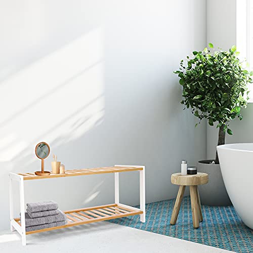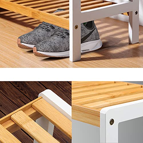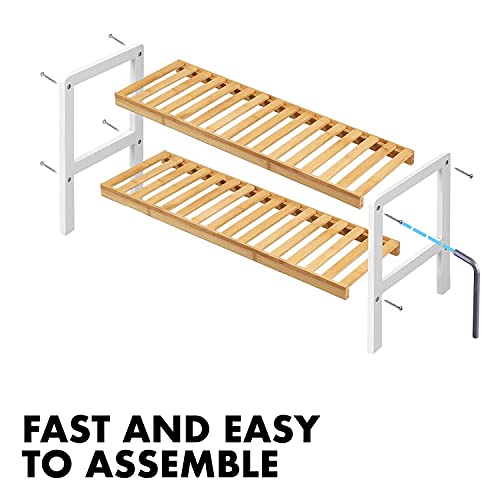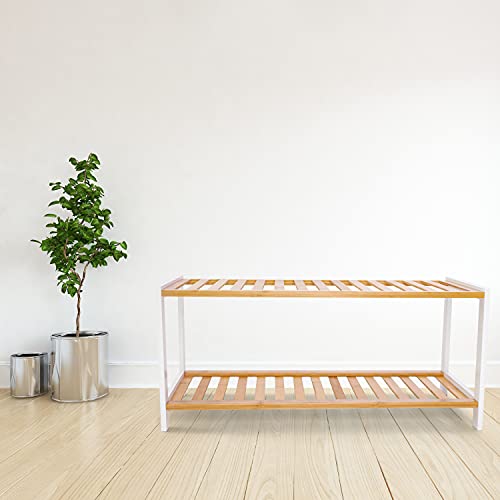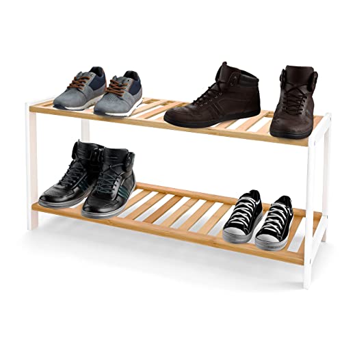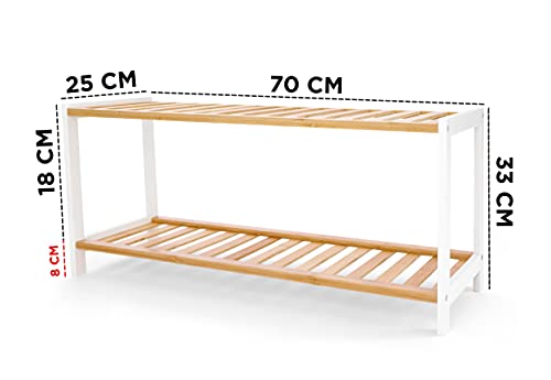KEPLIN - كيبلين رف احذية من الخيزران، سهل التركيب مع رفين بسعة تخزين كبيرة، حامل ومنظم احذية خشبي، ما يصل الى 6-9 ازواج، مثالي للرواق وغرفة النوم والمساحات الصغيرة، بني/ابيض (طبقتان)