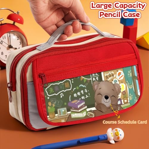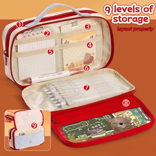 Kequsprk - مقلمة شفافة كبيرة السعة متينة وواسعة مع مساحتي تخزين بسوستة للإغلاق وبتصميم طبقات لسهولة الفرز والتنظيم لتخزين الأدوات المكتبية عند السفر من كيكوسبرك