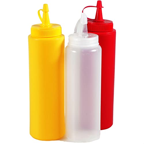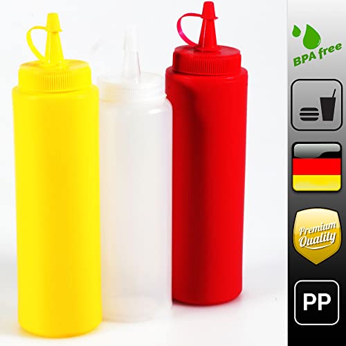 Kerafactum - زجاجات ضغط لصلصة الشواء والخردل والكاتشب، زجاجة ضغط موزع من البلاستيك من كيرافاكتوم، سعة 250 مل، مجموعة مختلطة من 3 قطع