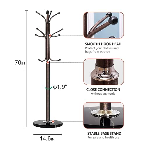 Kertnic - حامل معاطف معدني بقاعدة من الرخام الطبيعي كورتنيك بـ 12 خطافا لتعليق الاوشحة والشنط والجاكيتات والقبعات برونزي خليط صلب