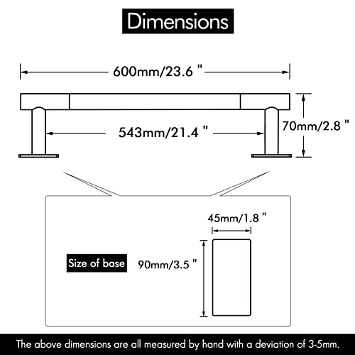 - تحمل قوي: لزيادة منطقة الضغط ذاتية اللصق، اعتمدت كيس قاعدة كبيرة جدًا 90 × 45 ملم، بحد أقصى. الحمولة: 3 كجم. الطول الكلي (600 ملم)، والطول القابل للاستخدام (543 ملم).