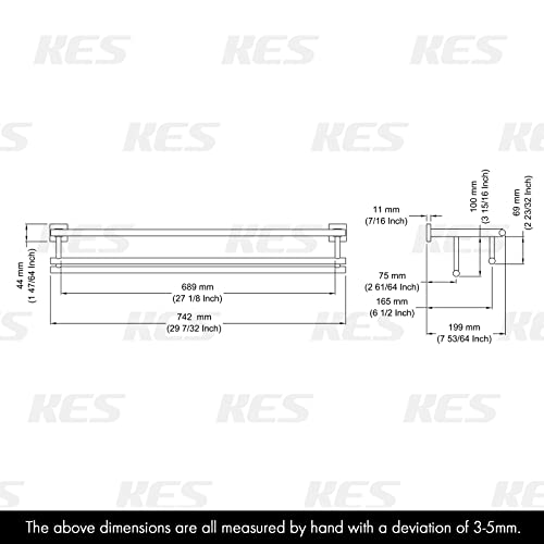 KES - حامل فوط كبير مكون من عمودين فولاذ مقاوم للصدأ بطول 76 سم لتعليق الفوط، منظم دش بتصميم مربع عصري مثبت على الحائط بلمسة نهائية مصقولة موديل A2112S75-2 من كيس