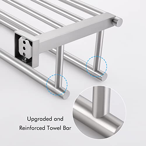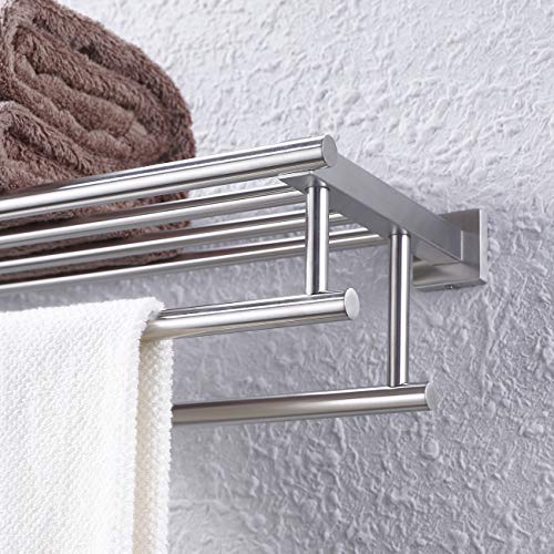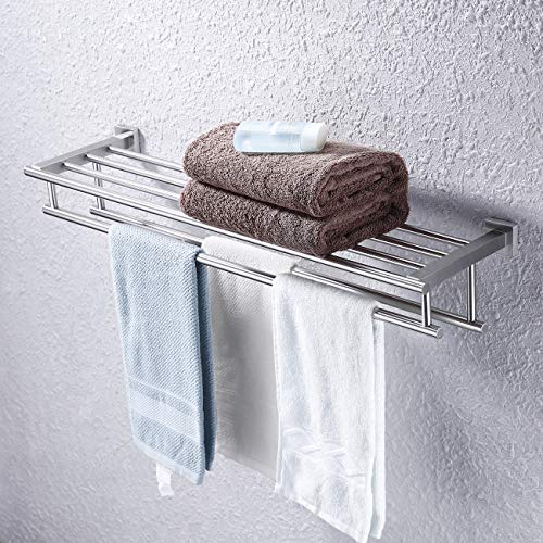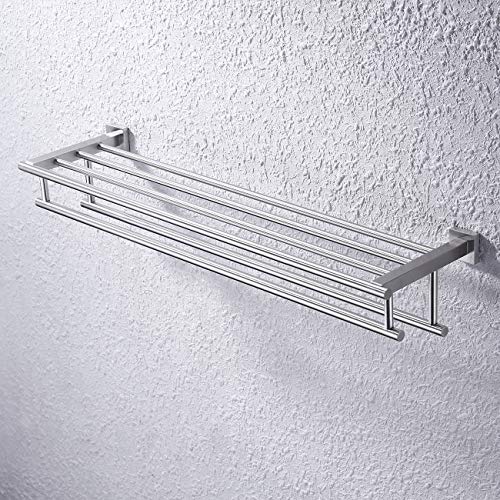 - صلب مقاوم للصدأ: رف الفوط بأعمدة من الصلب المصقول مصنوع من الفولاذ المقاوم للصدأ SUS304 الممتاز لضمان الحماية من الصدأ، والمتانة وطول العمر. لن يصدأ بسهولة في البيئة الرطبة بفضل مادة الفولاذ المقاوم للصدأ 18/8.