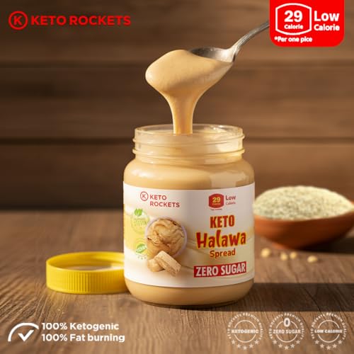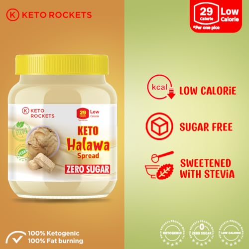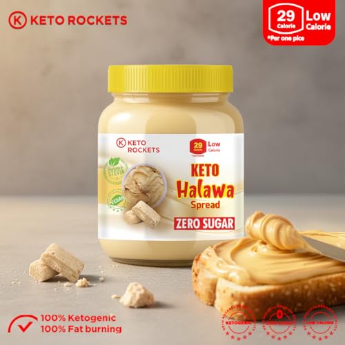 K KETO ROCKETS - كيه كيتو روكتس - حلاوة قابلة للدهن من كيتو روكتس، حلاوة مناسبة لكل أنظمة الدايت، خالية من السكر، محلاة بمستخلص ستيفيا الطبيعي، مصنوعة من مكونات طبيعية، خالية من الجلوتين ومنتجات الألبان والمواد الحافظة (350 جرام)