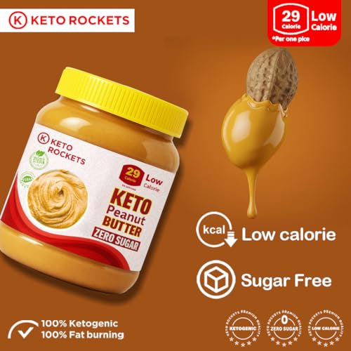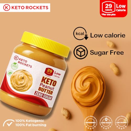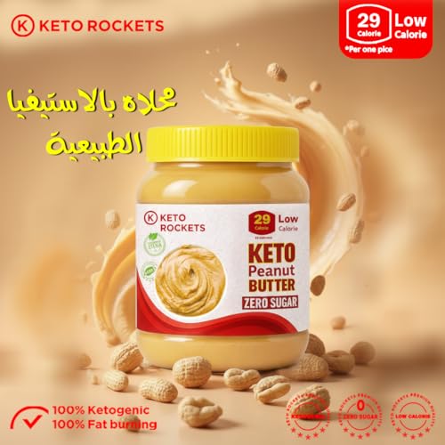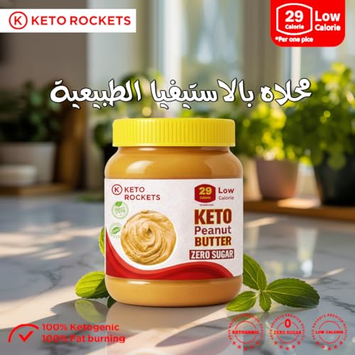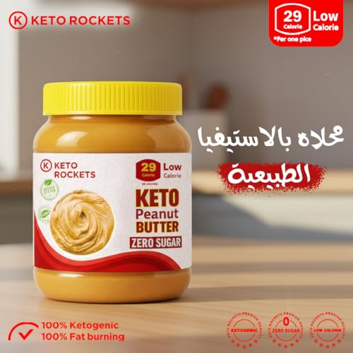 K KETO ROCKETS - كيه كيتو روكتس - زبدة الفول السودانى من كيتو روكيتس - خالية من السكر، كيتو، محلاة بالستيفيا الطبيعية، مكونات طبيعية، مناسبة لجميع الحميات الغذائية، خالية من الجلوتين ومنتجات الألبان والمواد الحافظة (350 جرام)