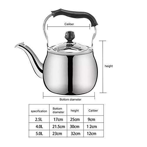Generic - غلاية محمولة من الستانلس ستيل بمقبض عازل مضاد للصدأ بسعة 2.5 لتر أو 4 لتر أو 5 لتر، سعة 5 لتر