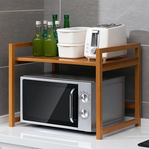 Ketumal - حامل ميكروويف من كيتومال | حامل فرن او تي جي من البامبو | رف علوي متعدد الأغراض لتخزين الأواني بسعة تصل إلى 10 كجم | رف تخزين وحدة المطبخ شديد التحمل | رف توابل