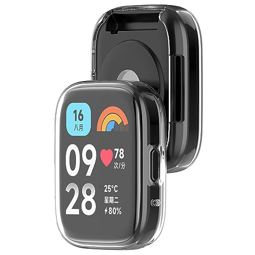 Keweni - حافظة حماية كاملة من الصدمات مع واقي شاشة ناعم البولي يوريثين المقاوم للحرارة كيويني متوافق ساعة ريدمي ووتش 3 لايت/ريدمي اكتيف عبوة قطعتين شفاف لساعات ذكية