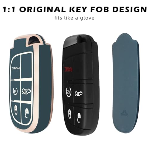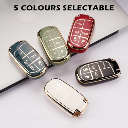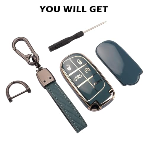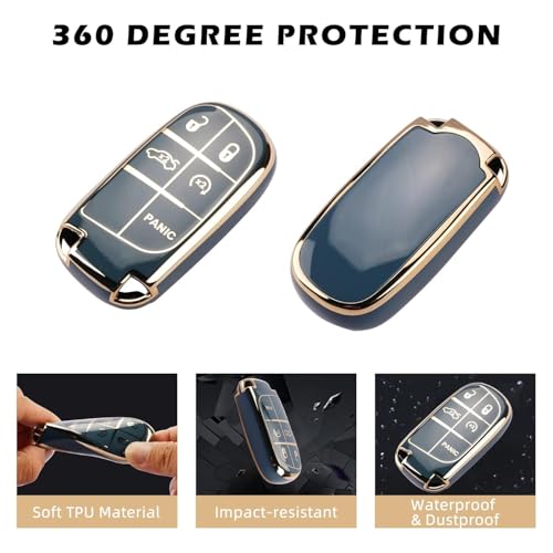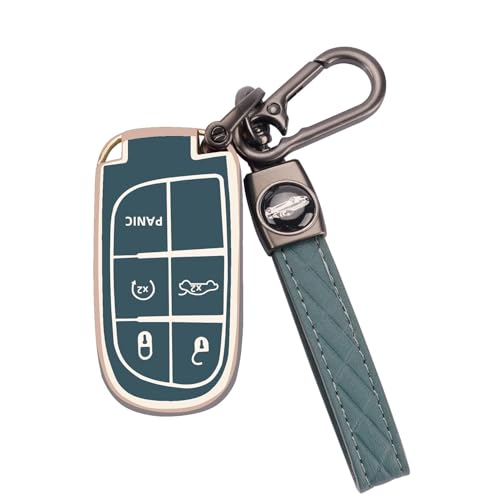 Generic - حافظة مفاتيح مع سلسلة مفاتيح جلدية - غطاء ناعم من البولي يوريثين الحراري متوافق مع جراند شيروكي - جيب ورينيجيد وكرايسلر ودودج ورام ودورانجو وجورني وتشالنجر (مفتاح ذكي) - رمادي - ذهبي