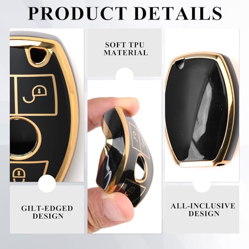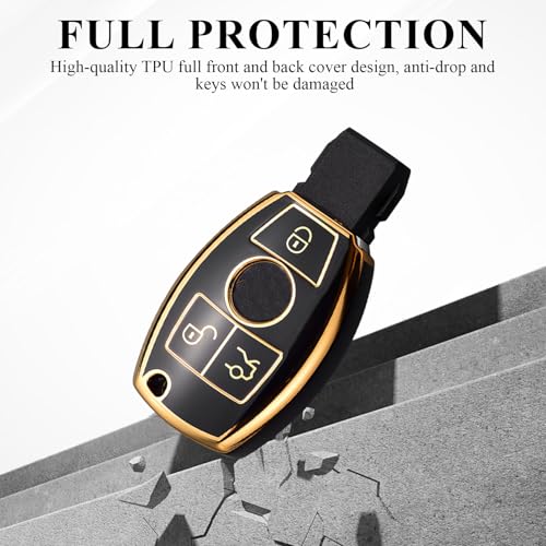 - وصول دقيق للأزرار - غطاء مفتاح ذهبي لسيارة مرسيدس، قالب مطابق للأصلي بنسبة 1:1، يوفر محاذاة مثالية للأزرار مع استجابة لمسية. وظائف كاملة للقفل والفتح وصندوق السيارة بدون تعطل الأزرار.
