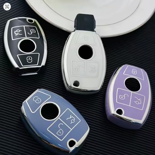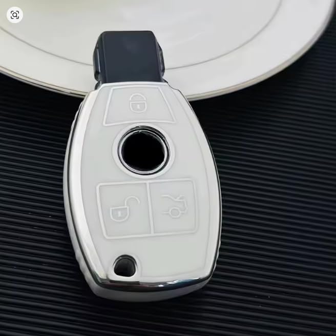 Generic - غطاء حماية لمفتاح السيارة – متوافق مع مفاتيح Mercedes-Benz – تصميم ناعم من البولي يوريثين الحراري مع سلسلة مفاتيح – حماية شاملة 360 درجة – لون فضي