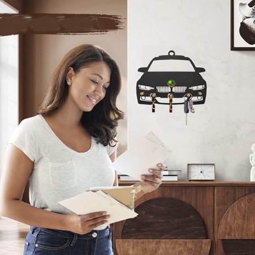 Generic - حامل وشماعة مفاتيح علاقة خشب مودرن ب 5 خطاف لتعليق المفاتيح مناسبة للمنازل والمكاتب - بتصميم شعار سيارة بى -- ام - من كابر تريد متعدد