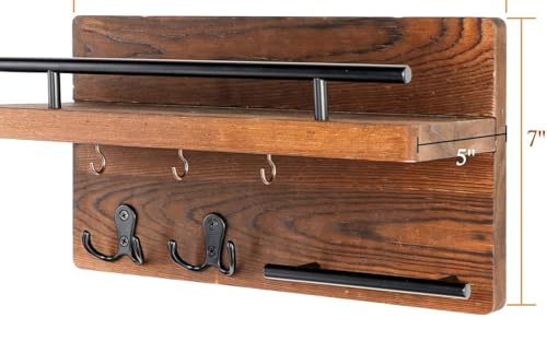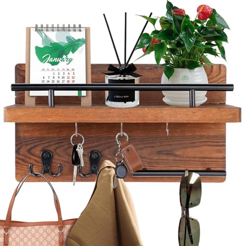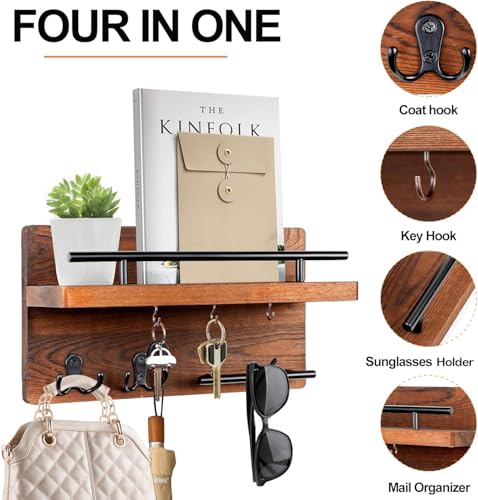 Generic - حامل مفاتيح لتزيين الحائط مع 5 خطافات للمفاتيح، شماعات مفاتيح مثبتة على الحائط مع رف مفاتيح البريد، منظم بريد خشبي مع رف، ديكور منزلي ريفي للمدخل والممر والمكتب